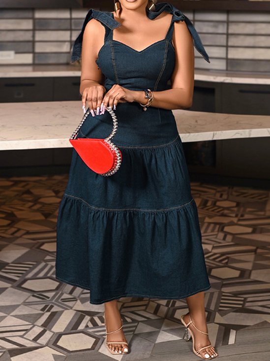 Urban Unifarben Geknöpft Reverskragen Knielänge Kleid