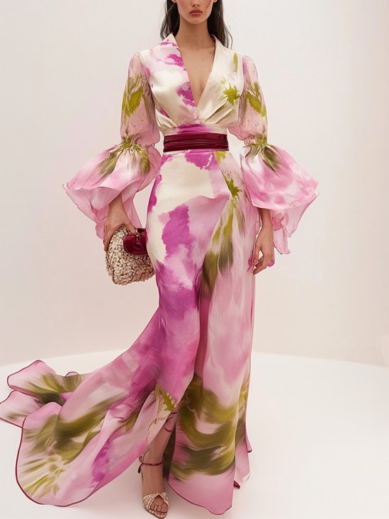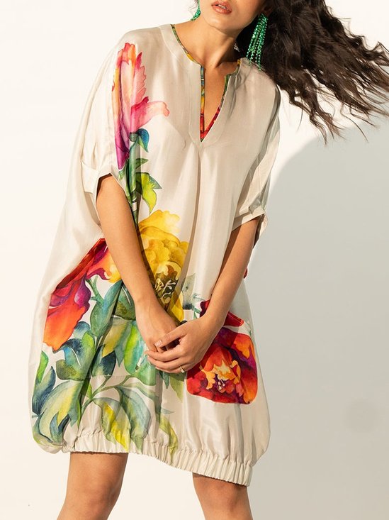 Urban Geblümt Print Mock Neck Knielänge Kleid