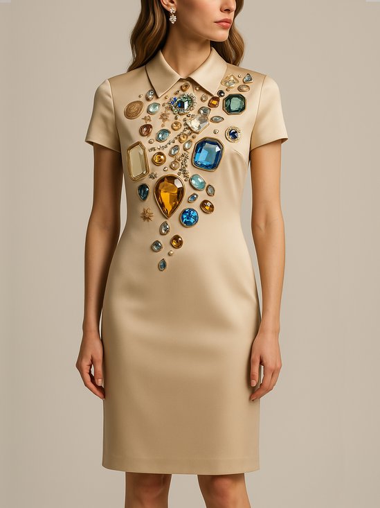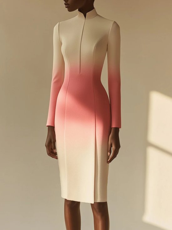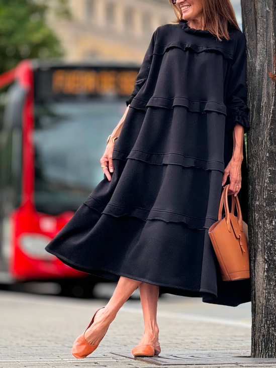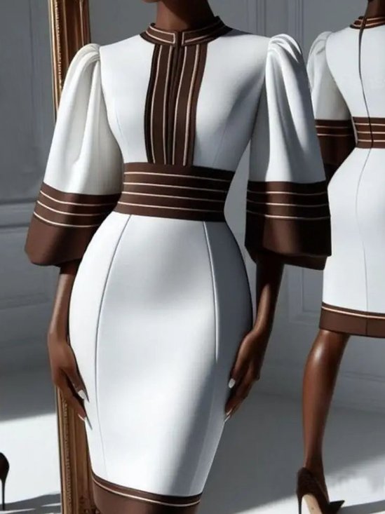 Elegant Unifarben Split Ärmel Irregulär Handwerkskunst Stehkragen Knielänge Kleid