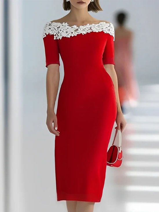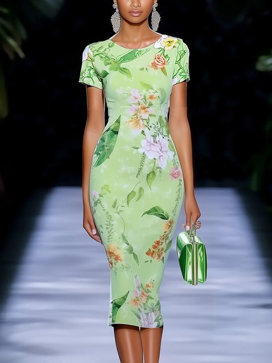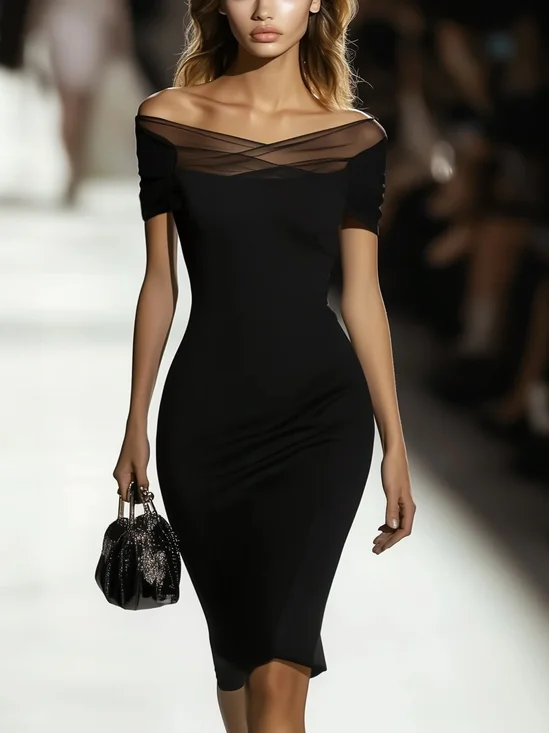 Elegant Rundhals Unifarben Regelmäßige Passform Kleid