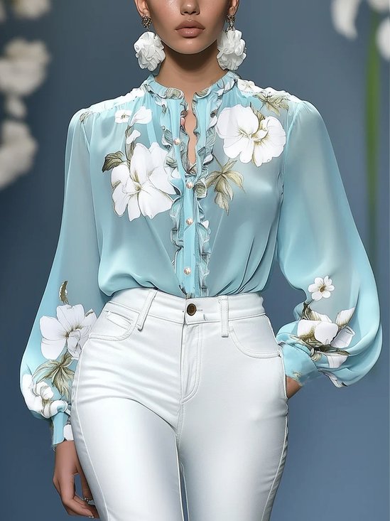 Lässig Geblümt Print Schalkragen Bluse