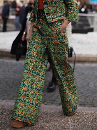 Elegant Zufälliger Druck Hose mit Weitem Bein