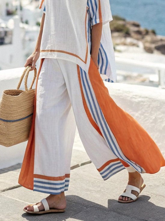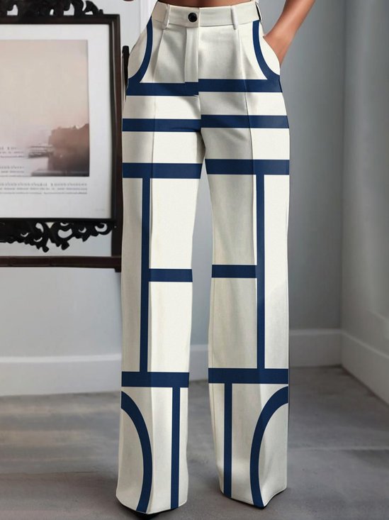 Lässig Gestreift Print Gerade Hosen