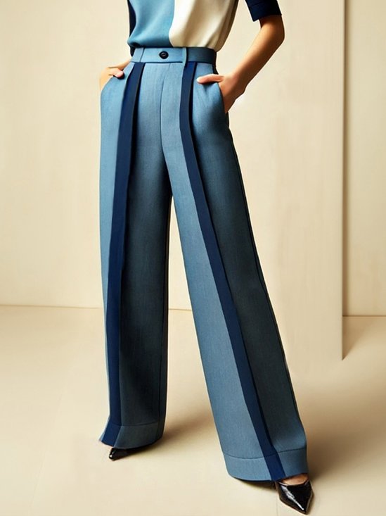 Lässig Farbblock Gerade Hosen