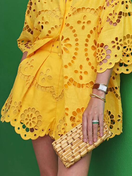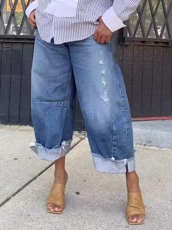 Urban Denim Geknöpft Unifarben Weitem Bein Jeans