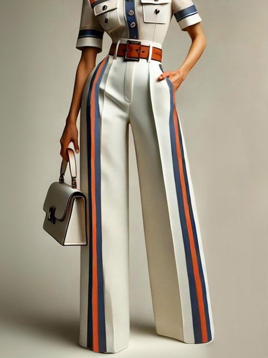 Lässig Farbblock Hose mit Weitem Bein Mit Nein Gürtel