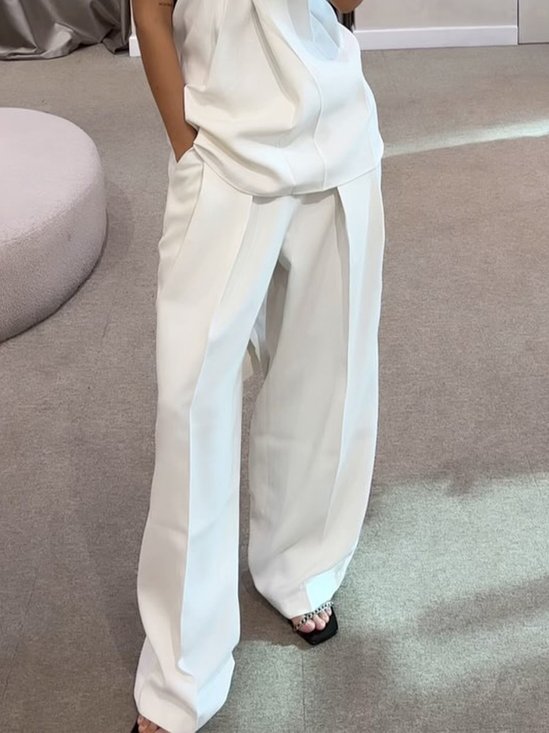 Elegant Unifarben Hose mit Weitem Bein Fashion Hose