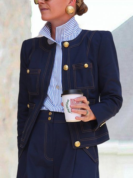 Urban Denim Geknöpft Unifarben Weitem Bein Jeans