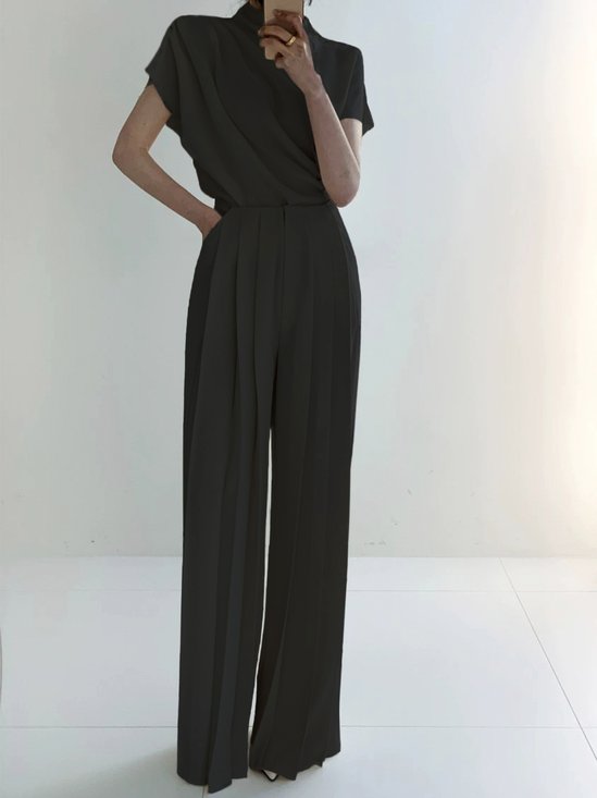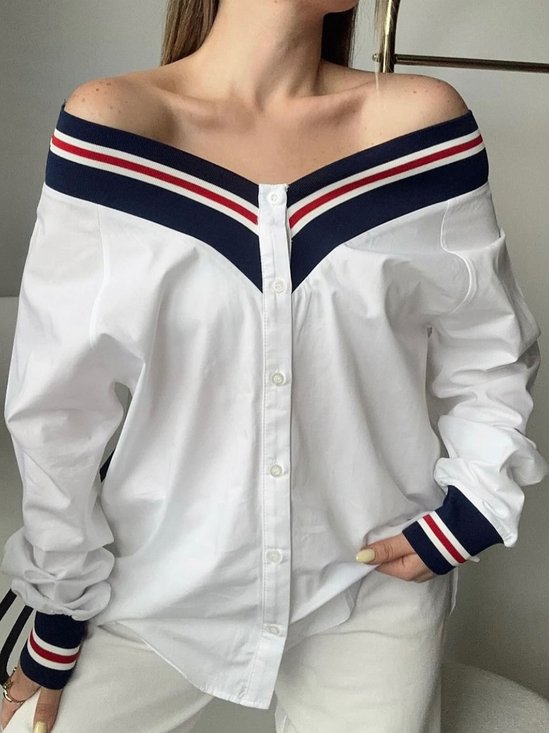Urban Unifarben Weit Regelmäßige Passform Schnalle Bluse