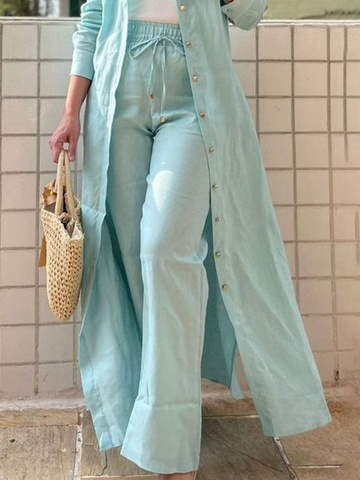 Lässig Denim Hemdkragen Unifarben Mantel