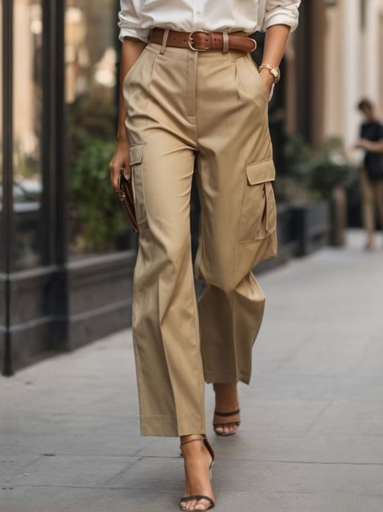 Urban Elegant Klassisch Schick Vielseitige Hose Weiß H-Linie Normale Passform