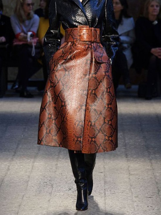 Urban Geknöpft Unifarben Kunstleder Breite Träger Rock