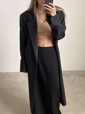 Urban Schick Khaki Strickjacke Set Hohe Elastizität Weit-kariert H-Linie