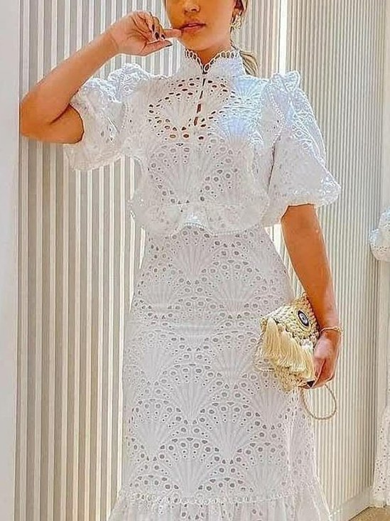 Urban Unifarben Irregulär Handwerkskunst Carmen Ballon-Ärmel Bluse