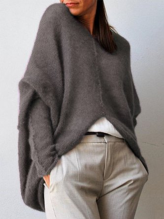 Urban Unifarben V-Ausschnitt Pullover Strickjacke Mit Brosche