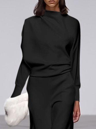 Lässig Unifarben Rollkragen Locker Pullover Mit Halsband