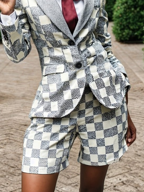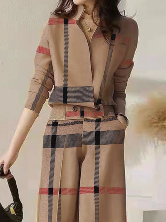 Lässig Kariert Nahtverarbeitung Stehkragen Minikleid