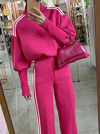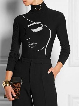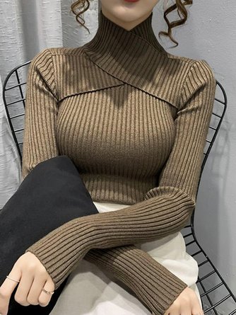 Gestrickt Lässig Unifarben Rollkragen T-Shirt