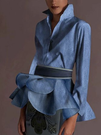 Baumwolle Urban Unifarben Schößchen Lotus Blattkragen Bluse