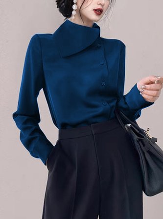 Elegant Unifarben Stehkragen Bluse