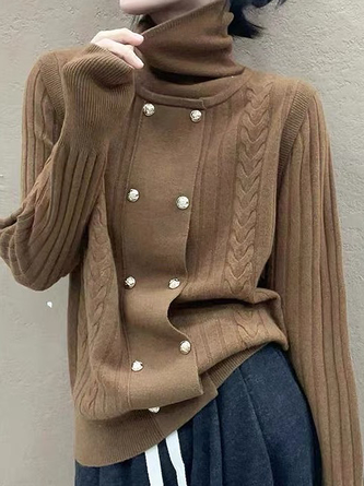 Elegant Farbblock Geknöpft Schalkragen Pullover