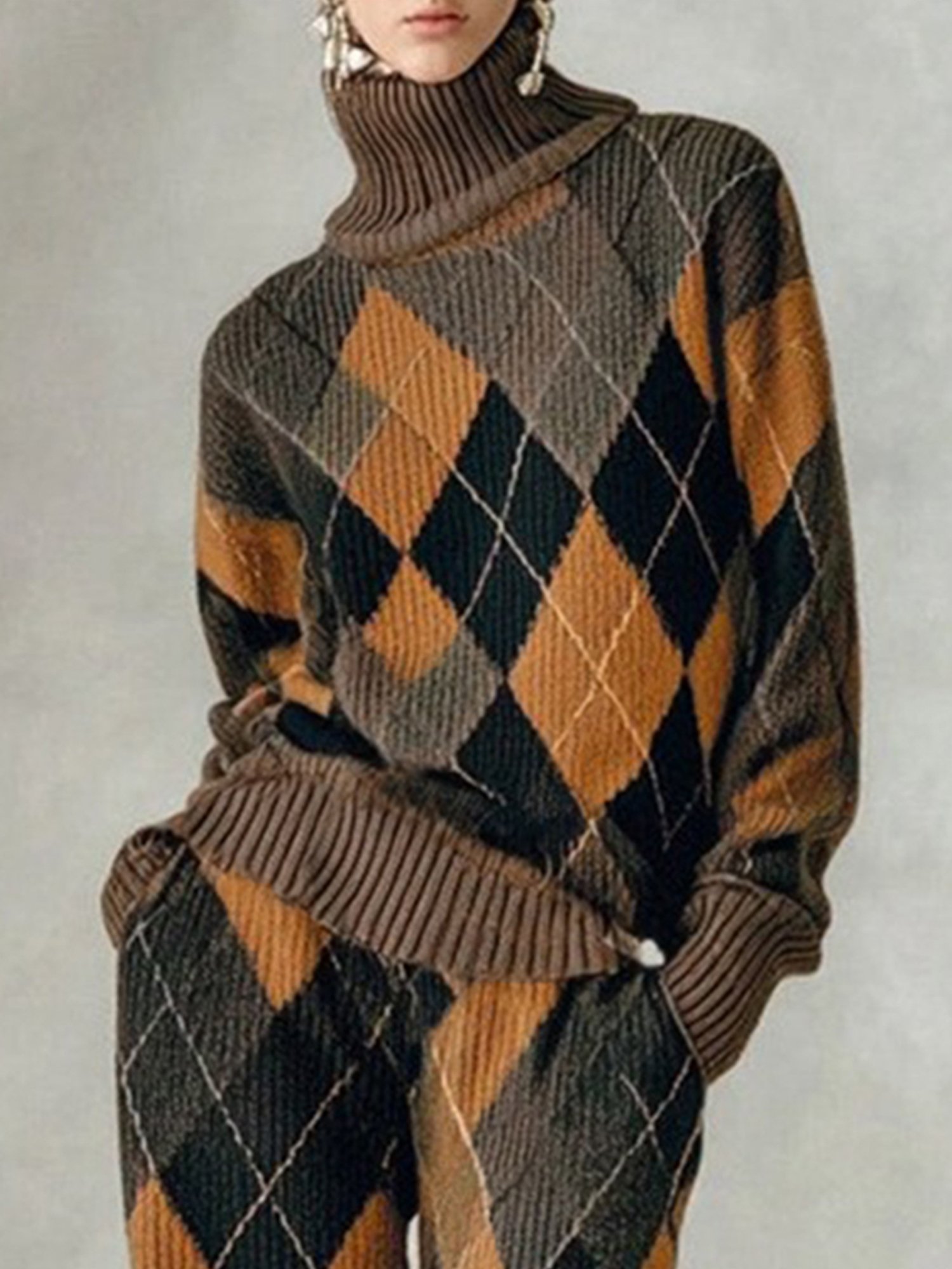 Lässig Kariert Rollkragen Pullover